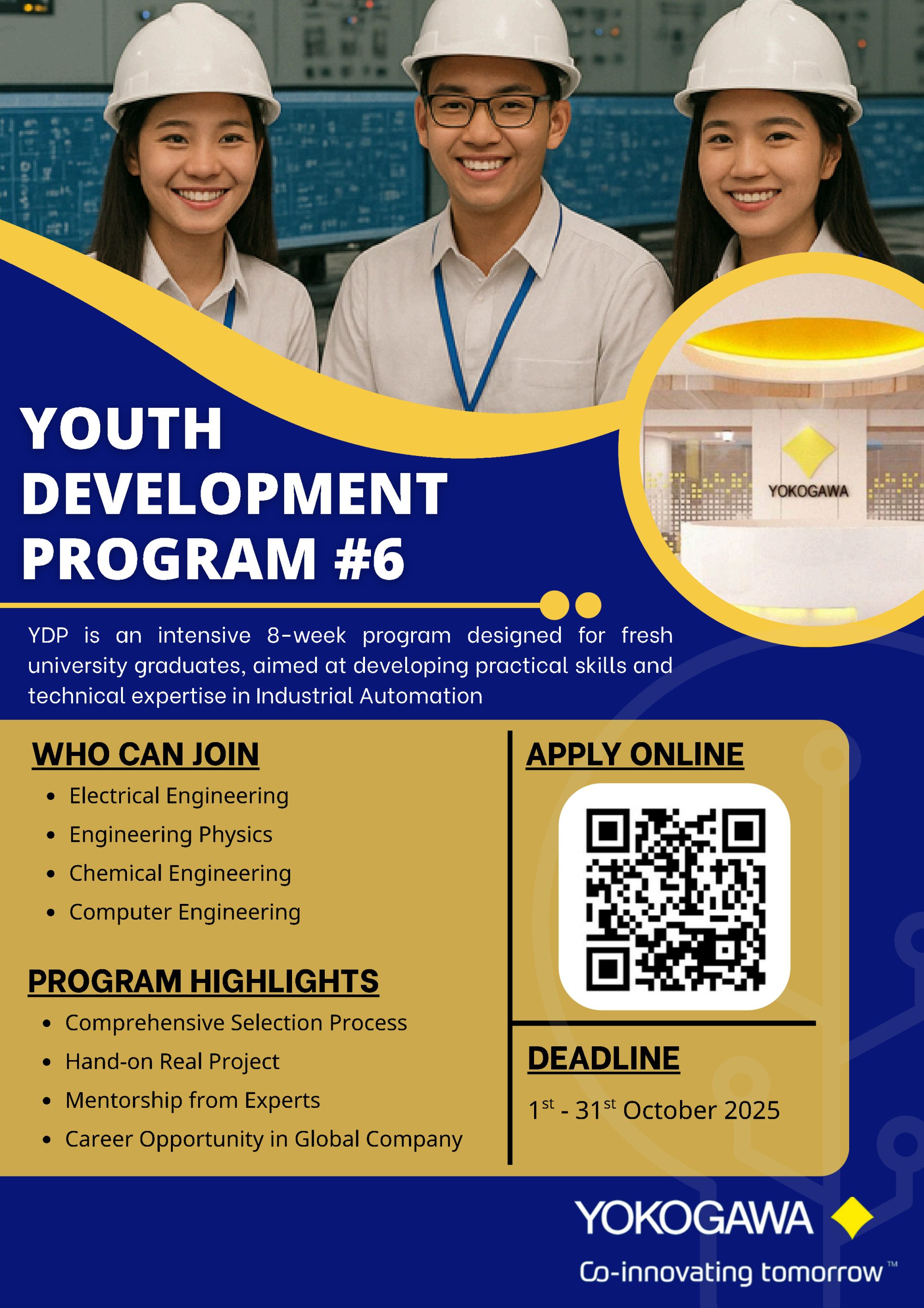 PT Yokogawa Indonesia kembali membuka Youth Development Program (YDP) Batch 6 β€” sebuah program pengembangan talenta muda yang dirancang khusus bagi mahasiswa dan lulusan baru yang ingin berkarier di dunia automation engineering dan industrial technology.
